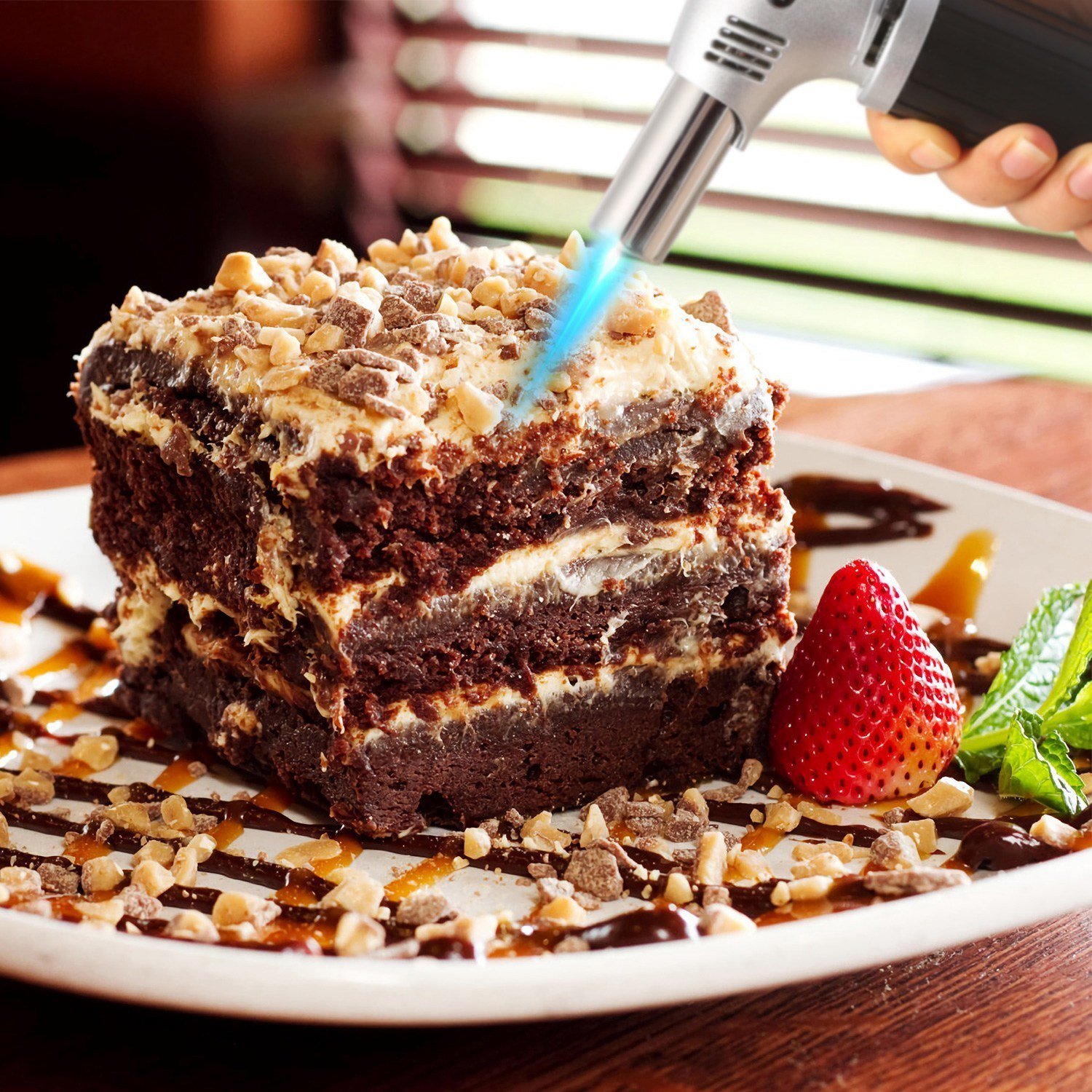 ** MULTI-PURPOSE*:Great chef kitchen cooking torch for caramelizing foods; glazing a baked ham; searing a steak; roasting bell peppers; melting cheese; toasting bread crumbs; outdoor BBQ etc. and also ideal for soldering DIY jewelry; heat shrink tubing; lighting your fireplace and cigar or as a survival tool.