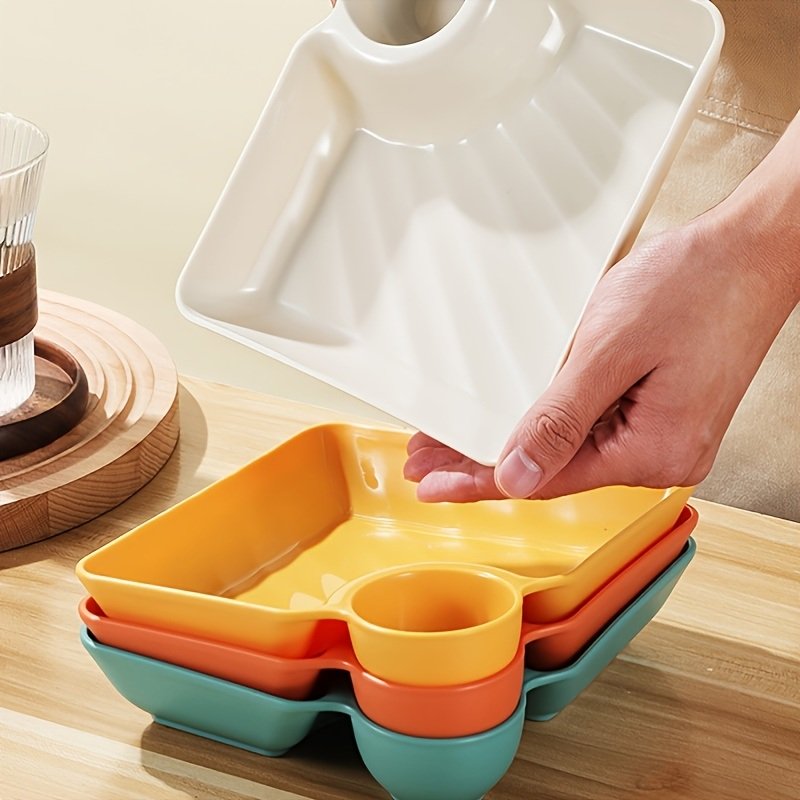 1pc Dumpling Plate With Sauce Dish; Potato; Water; Dumplings; Plate With Vinegar; Dinner Plate; Household Creative Square Serving Plate With Vinegar S